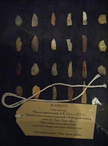 Bladelets used for arrow heads or cutting. Photo taken at Wits' Origins museum - an excellent museum of the origins of man up to the Late Stone Age, i.e. Khoisan/Bushmen. If you lived a nomadic life, how many tools would you have, bearing in mind that everything you owned you'd have to carry? Your toolkit would probably comprise just the bare essentials sourced from the environment, and which melded back into the environment when discarded. The raw materials for the survival kits were sticks, stones, bones, skins and plants. Easy to make. Easy to replace - for the skilled nomads. ![]() The arrows were carried in a quiver, made from the quiver tree. The knobkierie was twirled above the hunter's head and then hurled with precision at a ground-living creature, eg. a guinea fowl or francolin. The Khoisan who used Melville Koppies seasonally would have been such minimalists. A hunter's tools were as follows: arrow heads knapped from a quartzite core or fashioned from bone, a shaft, bow and quiver from trees, arrow poison from plants or insects and the drawstring from the long spinal sinew of a large animal. Fire was made by twirling of two sticks together. Leather, sewn with bone needles and sinews, was used to make medicine bags and 'backpacks' for gathering food. Ostrich shells and gourds provided utensils. Paintbrushes were fashioned from the bristly tail hairs of animals. A grooved rock was used to round the ostrich shell necklace beads. Temporary huts were simply bundles of thatching grass over sapling supports. There was ample time for painting and decoration and story-telling as there were no daily household or farming chores.